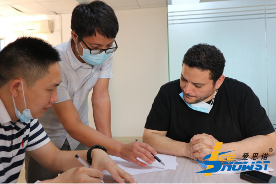Afterwards, we showed him the details and live photos of our products in the conference room. And he made suggestions to us on some details, we also actively answered his questions in detail, and analyzed customers’ suggestions from a professional point of view.